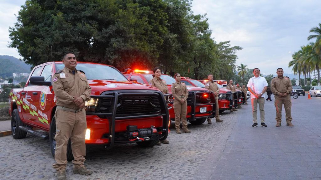 El gobierno municipal entregó este martes cinco camionetas equipadas a la Dirección de Protección Civil y Bomberos, con lo cual se fortalece esta corporación de rescate y aumentará su capacidad de reacción para beneficio de la población vallartense.
