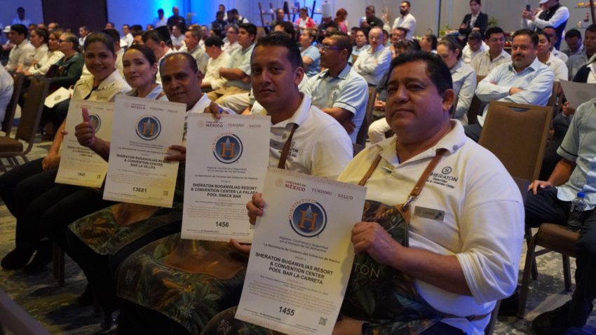 En el acto que se llevó a cabo en el hotel Sheraton Buganvilias, fueron otorgados 14 Distintivos “H” a ese establecimiento de hospedaje, seis al hotel Las Palmas y uno al departamento de nutrición del Hospital Joya, así como 11 sellos “Punto Limpio” al hotel Velas Vallarta.
