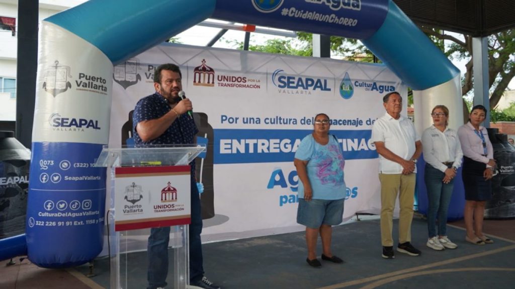 El alcalde de Puerto Vallarta, Profesor Luis Alberto Michel Rodríguez, encabezó este martes 3 de octubre, la cuarta entrega del programa de suministro gratuito de tinacos a familias de la parte alta de El Pitillal.