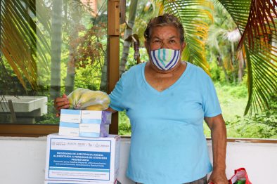 Cada familia recibe dos paquetes con despensa de productos básicos, una caja con litros de leche y una dotación extra de vegetales, que corresponden a los meses de julio y agosto, para 1 mil 248 familias del PAAP y 145 del programa ‘Primeros Mil Días de Vida’.