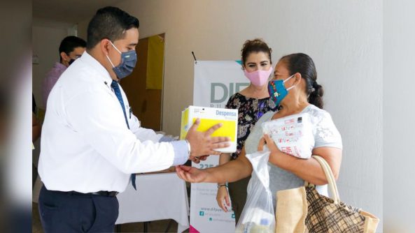 Gracias al esfuerzo conjunto de la iniciativa privada con el Sistema DIF Municipal que preside la Mtra. Candelaria Tovar de Dávalos, este viernes se hizo entrega de apoyo alimenticio donado por la empresa Coppel, a personas vulnerables del municipio que forman parte de los diversos programas del organismo, beneficiando con ello a 100 familias.