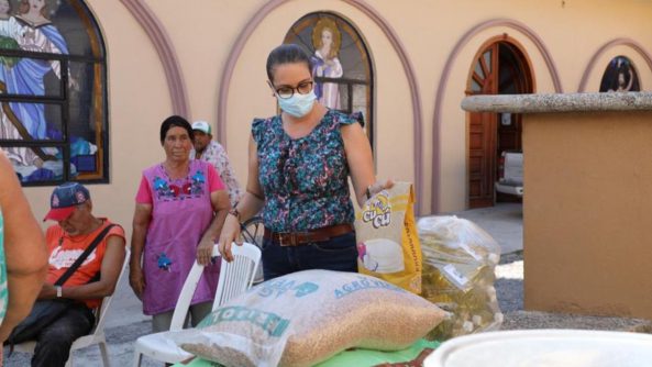 Con la finalidad de contribuir a la labor que realizan los distintos Comedores Comunitarios en Bahía de Banderas, la LTS Ana Esperanza Berumen de Cuevas, presidenta del Sistema DIF, entregó alimentos en estos espacios que apoyan a familias vulnerables, durante la contingencia por el COVID-19.