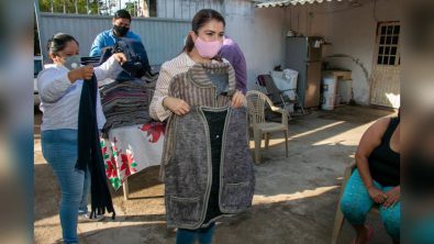 En un recorrido por las localidades de El Cantón, El Zancudo, Rancho Nácar y El Ranchito, se entregó a cada persona inscrita en el programa de panadería y taller de costura, el kit con un abrigo, guantes, cobertores y bufandas para la temporada de frío.
