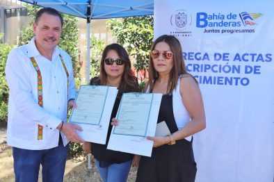 En el marco de la Feria de Nayarit en California, el Presidente Municipal de Bahía de Banderas, doctor Jaime Cuevas Tello, entregó 60 actas de nacimiento en beneficio de hijos de bahiabanderenses que nacieron en los Estados Unidos, los cuales, vía internet realizaron exitosamente su trámite ante el Registro Civil de Bahía de Banderas.