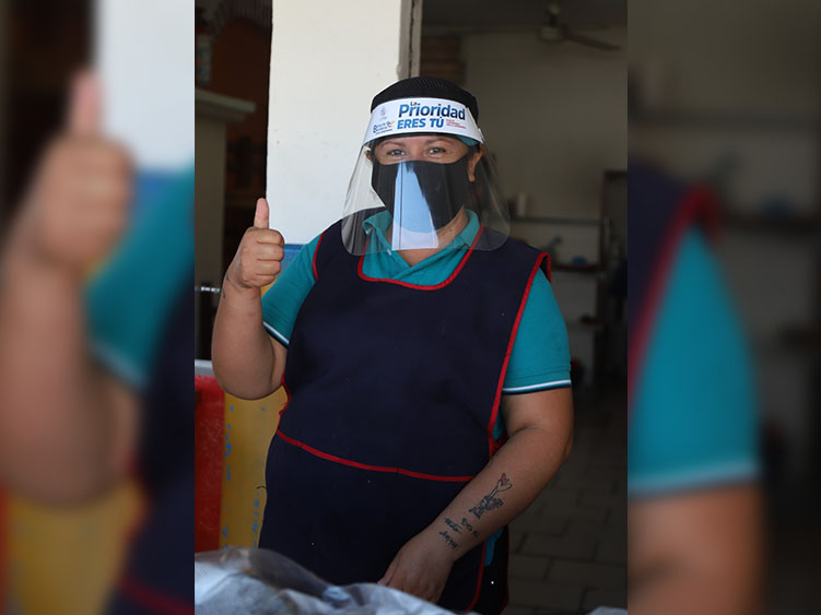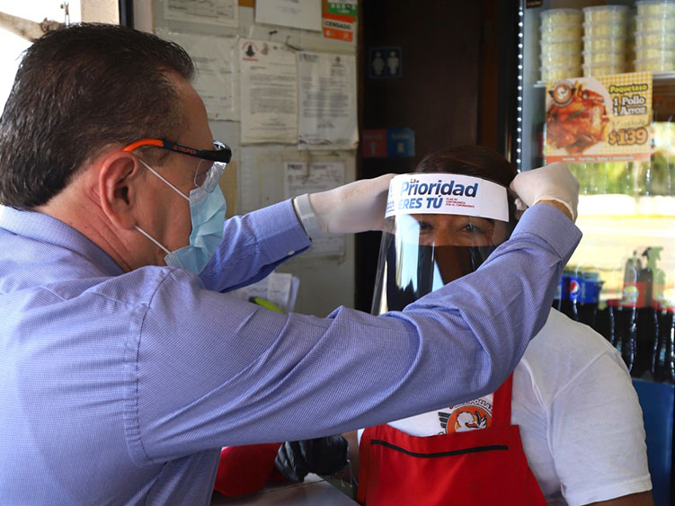 «Primero apoyamos repartiendo gel antibacterial, luego establecimos los filtros sanitarios y ahora entregamos estas caretas transparentes y además cubrebocas, ambos son lavables y reutilizables», señaló.