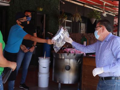 «Estamos apoyando a las personas que se dedican a las actividades esenciales, que no pueden quedarse en su casa, como son choferes de transporte público y comerciantes de alimentos. Salimos a entregar estas caretas que adquirió el Gobierno Municipal para disminuir contagios y proteger que no lleven el virus a sus familias».