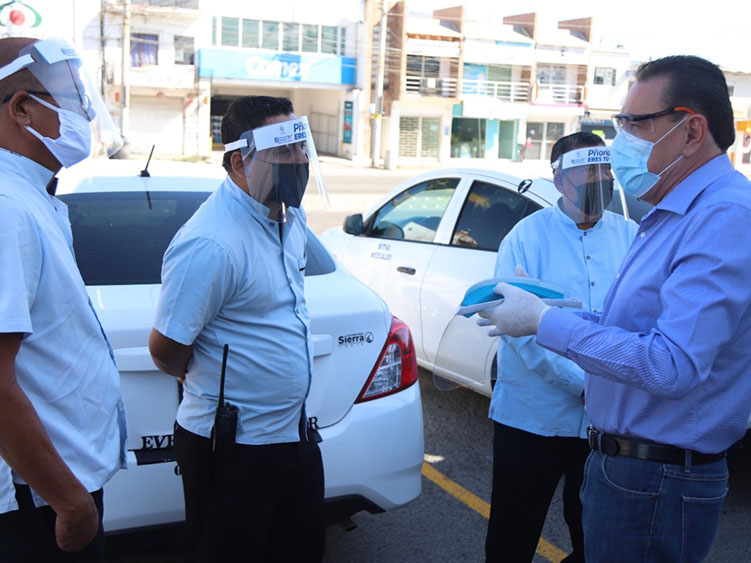 Entrega Jaime Cuevas caretas protectoras a taxistas y comerciantes