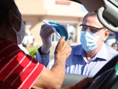 «Estamos apoyando a las personas que se dedican a las actividades esenciales, que no pueden quedarse en su casa, como son choferes de transporte público y comerciantes de alimentos. Salimos a entregar estas caretas que adquirió el Gobierno Municipal para disminuir contagios y proteger que no lleven el virus a sus familias».