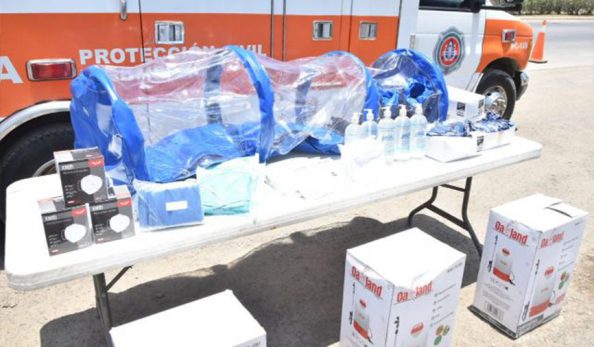 Entre los materiales entregados destacan cubrebocas KN 95, triple y doble capa, guantes, bomba aspersora para sanitización, overoles desechables, entre otros.