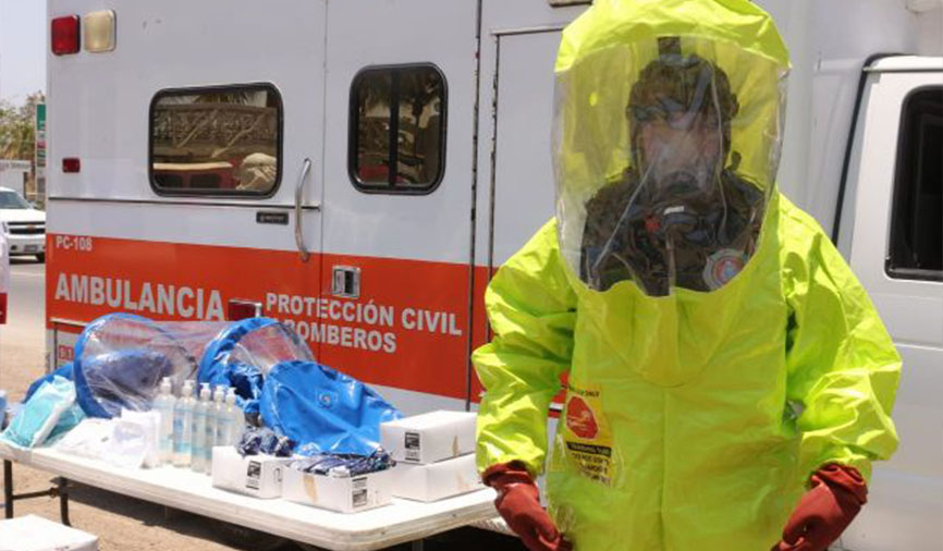 Por indicaciones del doctor Jaime Cuevas Tello, presidente municipal de Bahía de Banderas, se entregó a la Unidad Municipal de Protección Civil y Bomberos, equipo de protección personal, un traje para manejo aislado de riesgos biológicos, una cápsula para el aislamiento en el traslado de pacientes sospechosos de COVID-19, así como cubre bocas, gel sanitizante, entre otros materiales de atención prehospitalaria.