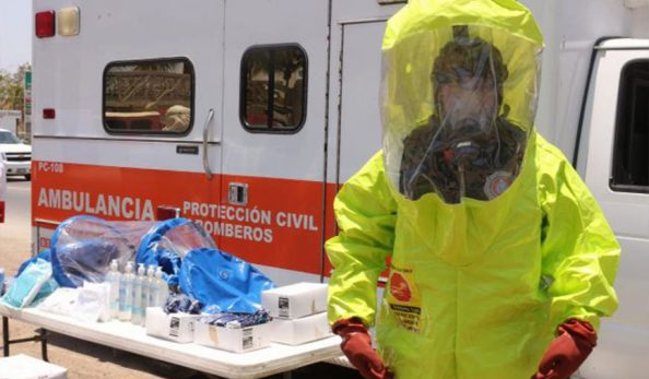Por indicaciones del doctor Jaime Cuevas Tello, presidente municipal de Bahía de Banderas, se entregó a la Unidad Municipal de Protección Civil y Bomberos, equipo de protección personal, un traje para manejo aislado de riesgos biológicos, una cápsula para el aislamiento en el traslado de pacientes sospechosos de COVID-19, así como cubre bocas, gel sanitizante, entre otros materiales de atención prehospitalaria.