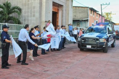 Así lo expresó el policía municipal Jorge Matías García, durante el evento en el cual, el presidente municipal, doctor Jaime Cuevas Tello, entregó a la Dirección de Seguridad Pública y Tránsito de Bahía de Banderas, 4 patrullas RAM doble cabina totalmente equipadas, 2 moto patrullas, además de armas cortas, armas largas y cartuchos, con una inversión de 3.5 millones de pesos de recursos del programa FORTASEG.