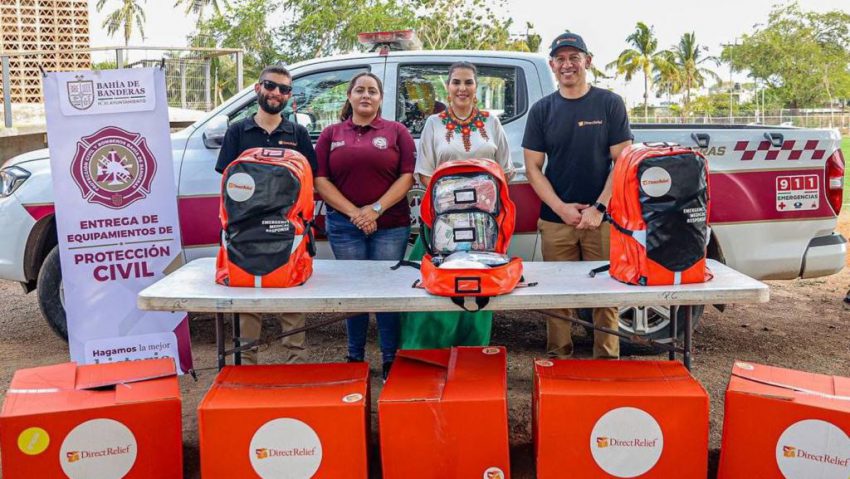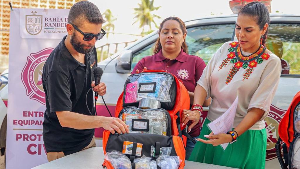 Bahía de Banderas Nay., 28 de junio de 2023.- A partir de hoy, la Dirección de Protección Civil del gobierno de Bahía de Banderas contará con cinco mochilas, completamente equipadas que servirán de gran apoyo para una primera respuesta ante una situación de auxilio.
