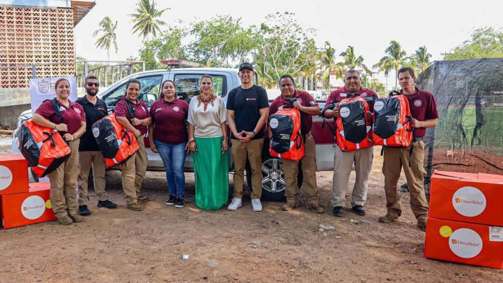 La alcaldesa agradeció la aportación de Direc Relief, señalando que próximamente se equipará con estas mochilas al personal de Protección Civil y Bomberos para que en motocicleta puedan llegar más rápido a los sitios de emergencia.