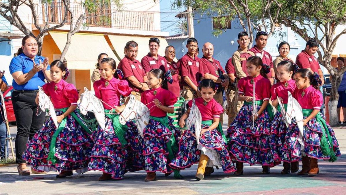 Bahía de Banderas, Nay,. A 9 de mayo de 2023.- Este lunes se realizaron los honores a la Bandera Nacional como cada inicio de semana por parte de esta XI Administración, donde además, la presidenta municipal de Bahía de Banderas, entregó sombreros al grupo de la Escaramuza pedagógica infantil de caballito de palo «Rancho La Noria», de la cual es madrina.