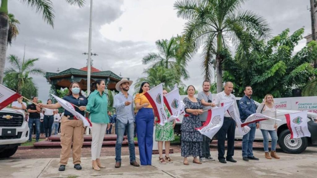 Bahía de Banderas, Nay., a 30 de agosto de 2022.- Esta mañana durante los Honores a la Bandera en la plaza principal de Valle de Banderas, la presidenta Mirtha Villalvazo Amaya aseguró finanzas sanas en el XI Ayuntamiento, y entregó tres unidades más para mejorar la prestación de servicios a las y los ciudadanos de Bahía de Banderas.