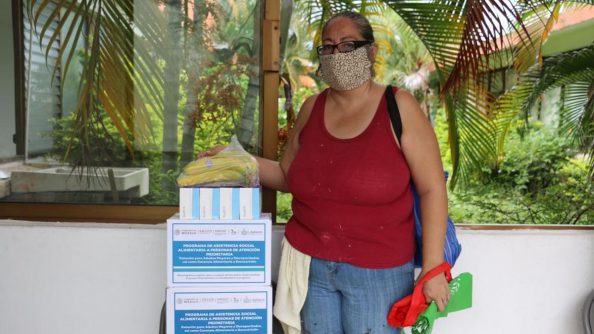 Como parte del programa, cada familia recibe dos paquetes con despensa de productos básicos, una caja con litros de leche y una dotación extra de vegetales, todo ello correspondiente a los meses de mayo y junio, con un total de 1 mil 248 beneficiados de PAAP y 145 personas del programa “Primeros Mil Días de Vida”.