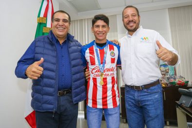 El alcalde Arturo Dávalos confió en que muy pronto estará debutando como parte del primer cuadro del Guadalajara, así como en otras categorías del selectivo nacional, pues es un joven que ha demostrado su calidad deportiva en el campo y hará todo por estar ahí, por lo que lo invitó a no desistir y seguirse preparando, en tanto que siempre contará con el apoyo de este gobierno municipal para seguirlo impulsando.