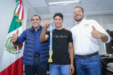 A su vez, Kevin Mariscal agradeció al presidente municipal y a quienes han estado como él siguiendo su carrera, “por el apoyo y por los mensajes de felicitación, pues esto no ha sido fácil, tuve muchos altibajos este año y pues cierro bien el año”.