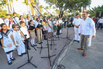Asimismo, se contó con la participación de la niña Ana Paola Cortez Aguirre, Síndico Municipal del Cabildo Infantil 2019, con la poesía ‘Mi Bandera’, así como el Coro Infantil y Juvenil Orquesta Escuela de Puerto Vallarta y la Banda de Música del municipio.