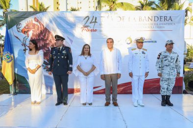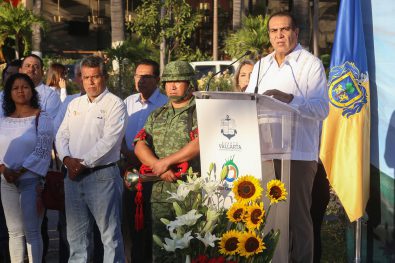 “Hoy es uno de los días más importantes en la vida de México y Puerto Vallarta; los cimientos de esta Nación se levantaron sobre los ideales, la lucha, esperanza y sangre de miles de mujeres y hombres que entregaron su vida por el país que hoy tenemos”, expresó el alcalde Arturo Dávalos Peña, al conmemorar este lunes el Día de la Bandera, que junto al escudo y el himno nacional -dijo- son elementos de unidad, expresión de las raíces independientes y soberanas, y símbolo de identidad del pueblo mexicano.