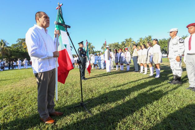 Indicó que desde la conformación del Ejército Trigarante, con el que se consuma la Independencia Nacional, “la bandera se constituye como el símbolo de nuestra libertad. Verde, blanco y rojo cobijan a todos los que nacimos en esta hermosa tierra y a la que le debemos lealtad, compromiso, entrega, amor y pasión por hacerla un mejor lugar para vivir y convivir con la familia”, objetivo que requiere de la responsabilidad compartida y el esfuerzo de cada uno desde su trinchera.