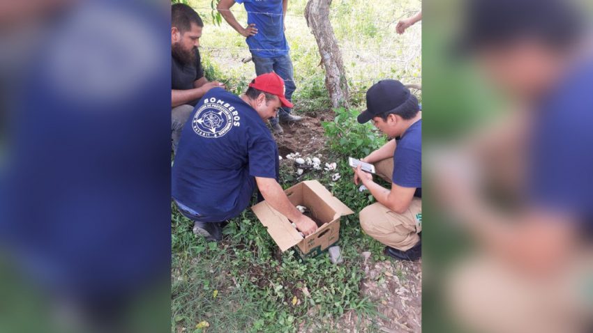Elementos de Protección Ciudadana y Bomberos, toman conocimiento del hecho y se dirigen al lugar señalado, donde se encontró el nido con once (11) huevos sin eclosionar y seis (6) crías de cocodrilo, siendo resguardados y entregados al personal del cocodrilario.