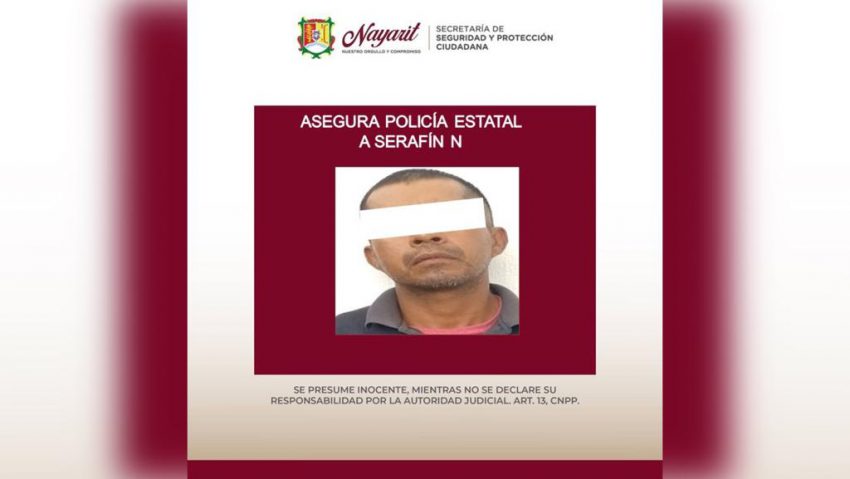 Como resultado de los trabajos realizados fue asegurado Serafín “N” “N”, de 40 años, en el municipio de Bahía de Banderas, dando cumplimiento a la orden de aprehensión, por presunta participación en el hecho delictuoso de daño a las cosas en agravio de una persona del sexo masculino.