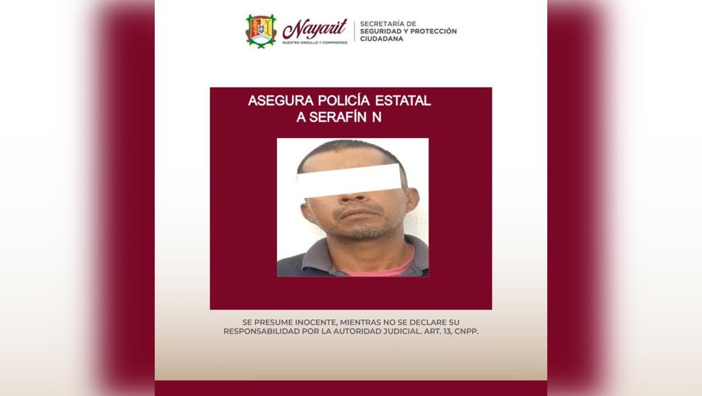 Como resultado de los trabajos realizados fue asegurado Serafín “N” “N”, de 40 años, en el municipio de Bahía de Banderas, dando cumplimiento a la orden de aprehensión, por presunta participación en el hecho delictuoso de daño a las cosas en agravio de una persona del sexo masculino.
