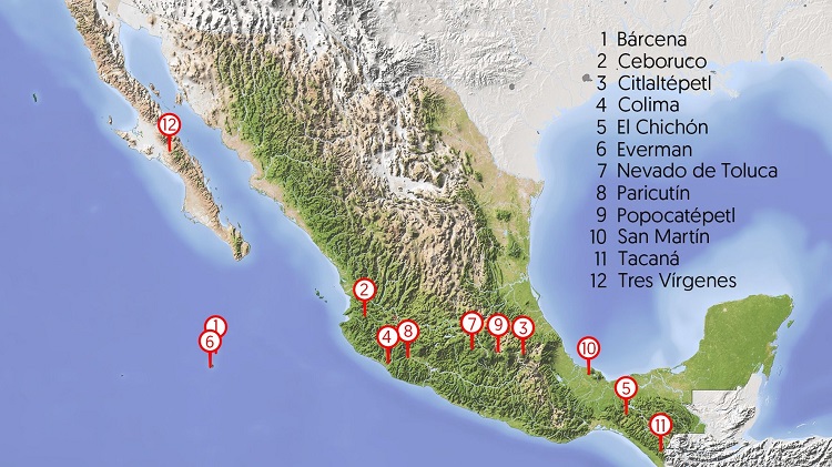 La Secretaría de Gobernación estima que el 75 por ciento de la población en México vive cerca de un volcán, siendo el de Colima y el Popocatépetl los que se monitorean 24 horas todo el año y su actividad se puede ver en tiempo real en el Atlas Nacional de Riesgos.