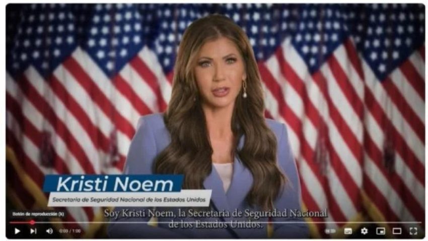 El anuncio lleva emitiéndose al menos desde el 3 de abril en el Canal de las Estrellas de Televisa y en él, Noem plantea que «si eres un criminal extranjero que está pensando en entrar ilegalmente a los Estados Unidos, ni lo pienses».