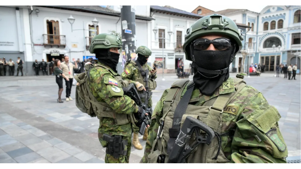 Tras ello, Noboa decretó el estado de conflicto bélico interno para hacer frente a la desenfrenada violencia criminal con el apoyo de grupos combinados de militares y policías que mantienen fuerte presencia en las calles.