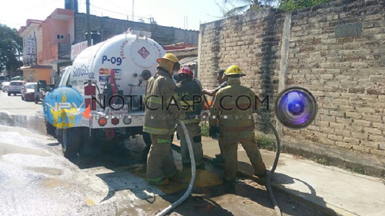 Los elementos de Bomberos inmediatamente se dirigieron al lugar a bordo de las unidades, quienes al arribar se percatan de que efectivamente ahí se encontraba un vehículo tipo Pipa con capacidad de 5 mil litros, propiedad de la empresa SoniGas, de la que salía gas por la válvula de la manguera.