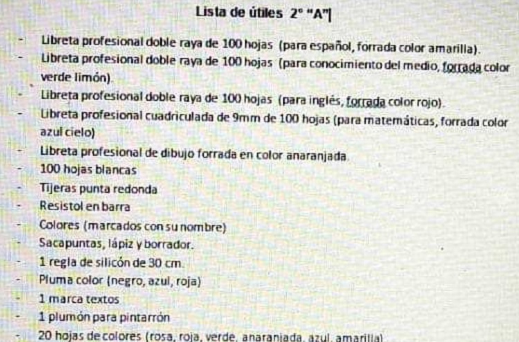 Como una reflexión, comenta que antes de estos despilfarros, los profesores solo pedía lo básico, ahora, señala, hasta papel fabuloso y jabón líquido para manos, amén de material para forrar libros de la marca indicada.