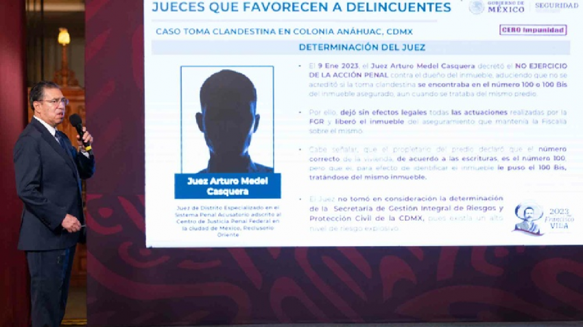 Ciudad de México. Como parte del informe de seguridad que quincenalmente los funcionarios del gabinete de seguridad presentan en la mañanera presidencial, el subsecretario de Seguridad Pública, Luis Rodríguez Bucio, dio a conocer otros tres casos de jueces que favorecen a presuntos delincuentes. En esta ocasión, el funcionario exhibió a juzgadores que decidieron no vincular a proceso a personas relacionadas con el robo de combustible, conocido como huachicol.