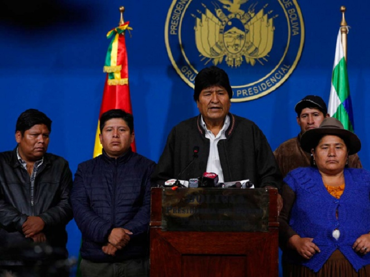Morales, que todavía cuenta con mayoría en el Congreso que elegirá a su reemplazante provisorio, aseguró que «el mundo y bolivianos patriotas repudian el golpe», tras recibir presión de militares y policías amotinados para que dimitiera.
