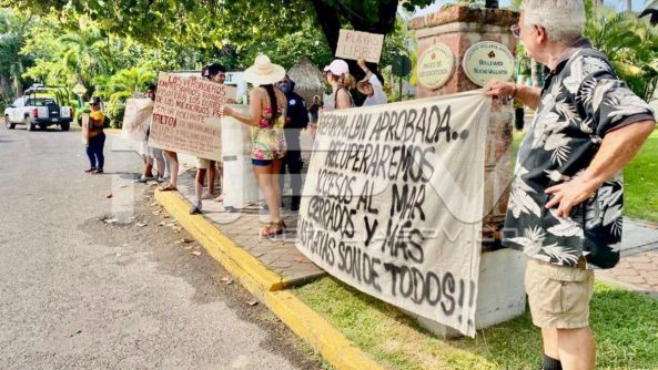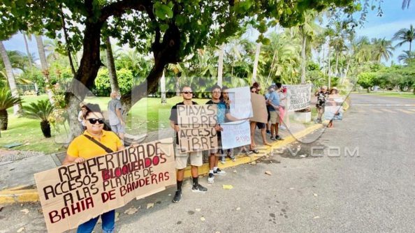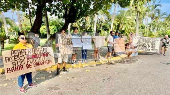 Esta mañana, un grupo de ciudadanos de Bahia de Banderas, se manifestó en Nuevo Vallarta, con el objeto de se respete al libre acceso a playas, en este municipio hay 34 bloqueadas