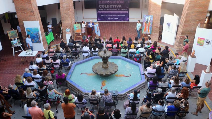 Veinticuatro artistas femeninas de Puerto Vallarta presentaron sus obras en una exposición colectiva en el patio central de la Presidencia Municipal, en conmemoración al Día Internacional de la Mujer.