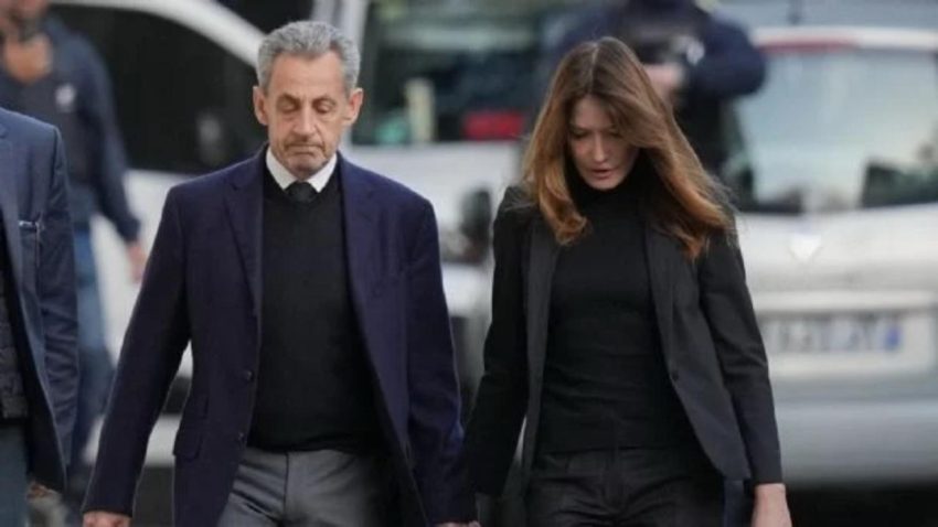 Sarkozy, de 70 años, fue recibido por cientos de seguidores cuando salió de su casa en París de la mano de su esposa Carla Bruni-Sarkozy. La abrazó antes de subir a un coche policial.