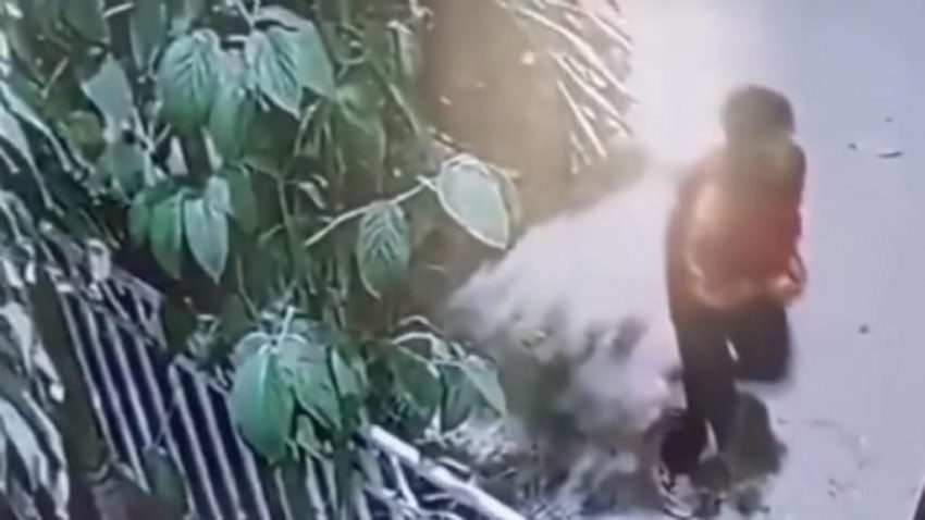 CIUDAD DE MÉXICO (apro).– Cámaras de seguridad captaron el momento preciso en el que un sujeto perdió el brazo por la explosión de una bomba que intentaba dejar en la casa de un empresario al que estaba extorsionando.