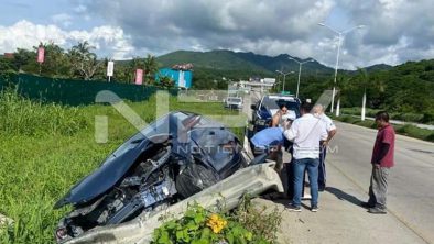 Vecina de Punta de Mita, resultó con lesiones luego de chocar su vehículo contra el muro de contención tras perder el control del volante luego de que otro vehículo le cerró la circulación y se dio a la fuga.
