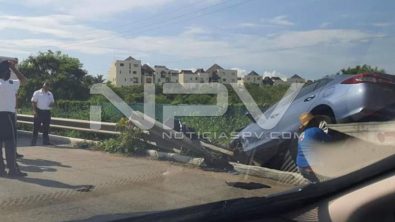 El accidente ocurrió en el ingresó al desarrollo B Nayar, donde un vehículo se impactó contra la barrera de contención luego de que la mujer que lo conducía perdió el control