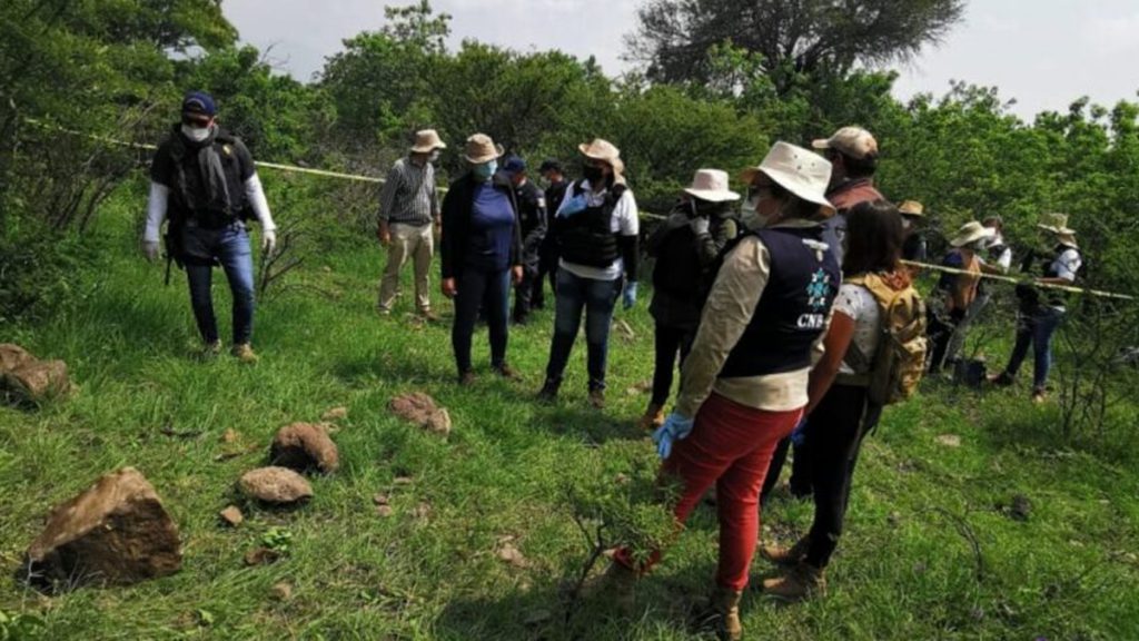 La Comisión Estatal de Búsqueda informó que un área del ejido fue delimitada después de un primer reconocimiento efectuado hace unas semanas, para proceder a la localización de cuerpos o restos humanos.