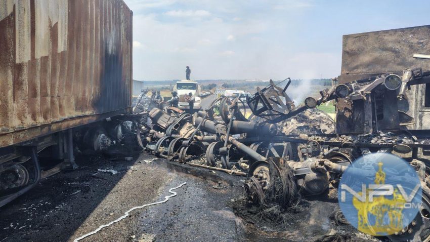 De acuerdo con Protección Civil y Bomberos de Jalisco, en el choque se vieron involucrados tres vehículos pesados y un automóvil compacto. Uno de los camiones transportaba maíz, mientras que los otros dos, un doble remolque y una caja seca, circulaban vacíos. A raíz del impacto, se produjo un incendio en el sitio.
