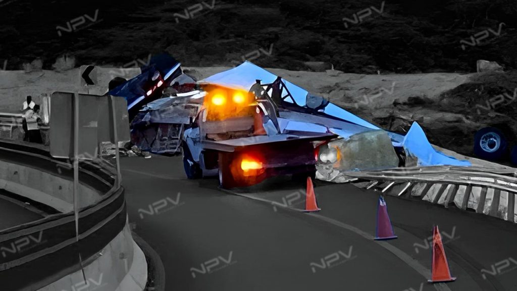 De acuerdo con los primeros reportes, el conductor de la pesada unidad habría perdido el control al tomar una curva a exceso de velocidad, lo que provocó que el tráiler saliera de la cinta asfáltica y terminara volcado, dañando además parte de la barra de contención.