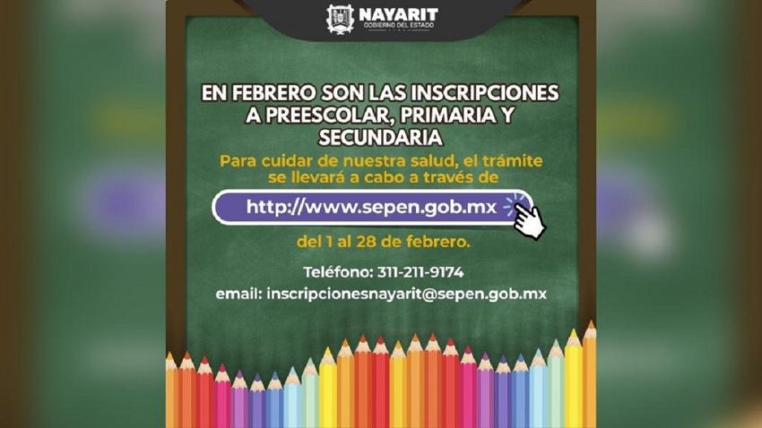 Tepic, Nayarit; 28 de enero de 2021.- Debido a la contingencia sanitaria que prevalece en el estado a causa del COVID-19, la Secretaría de Educación (SE) y los Servicios de Educación Pública (SEPEN) ponen a disposición de la ciudadanía el proceso de inscripciones en línea para el ciclo escolar 2021-2022, por medio del portal www.sepen.gob.mx