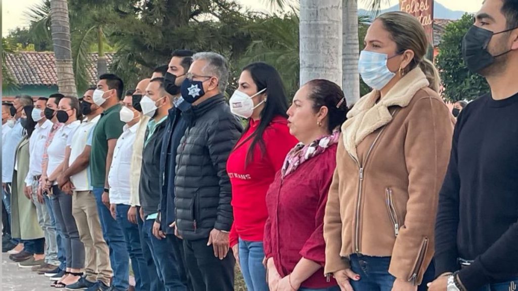 Bahía de Banderas, Nayarit, 3 de enero de 2022.- El pasado 2 de enero se conmemoró el Día Internacional del Policía, por lo que, durante los honores de este lunes en Valle de Banderas, la presidenta Mirtha Villalvazo reconoció a los elementos de Seguridad Pública de Bahía de Banderas y pidió un aplauso en reconocimiento a su trabajo, que muchas veces no es valorado ya que ellos están en la calle dejando en casa a sus familias, “mientras, nosotros estamos en disfrutando la velada en compañía de nuestros seres queridos”.