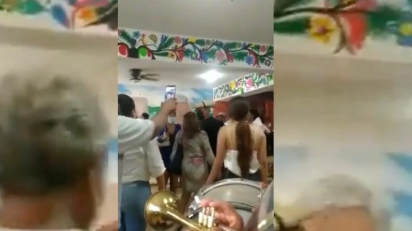 En el video que circula en redes sociales se puede observar que al evento acudió una grupo para tocar en vivo
