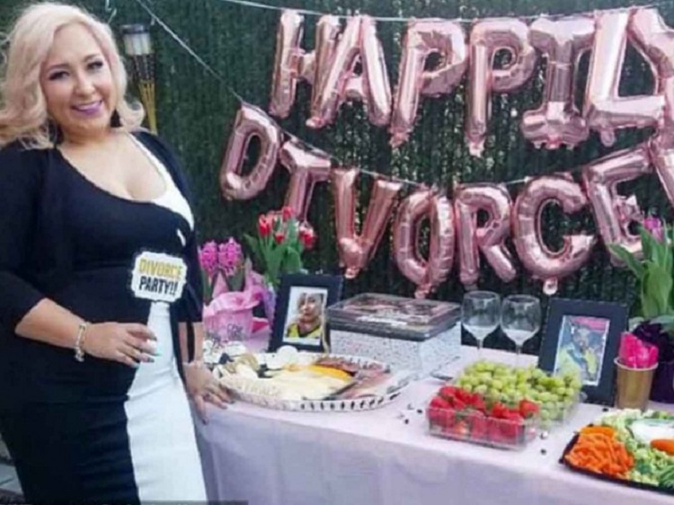 Le tomó casi 15 años demostrar que no había ni una sola pista de él, y para celebrarlo organizó una gran fiesta de divorcio con mucho vino, botana, pasteles y adornos que decían ‘Felizmente divorciada’.