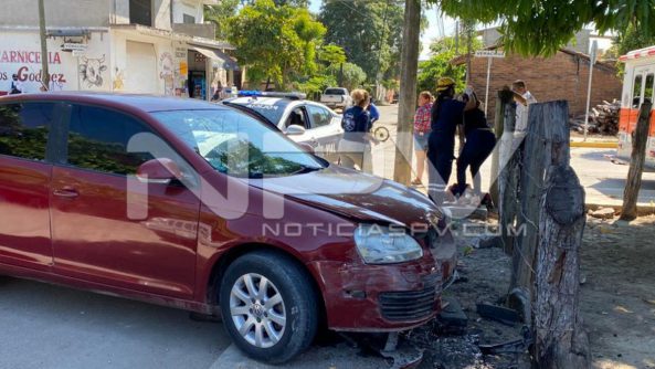 Cuantiosos daños materiales causó una mujer que conducía su auto, tras chocar contra una unidad de reparto de la empresa DHL, en pleno centro de San José del Valle, la cual intentó darse a la fuga para evadir su responsabilidad y terminó impactándose en su loca carrera, contra el poste de un lienzo de alambre de un terreno baldío causándole más daños a su vehículo.